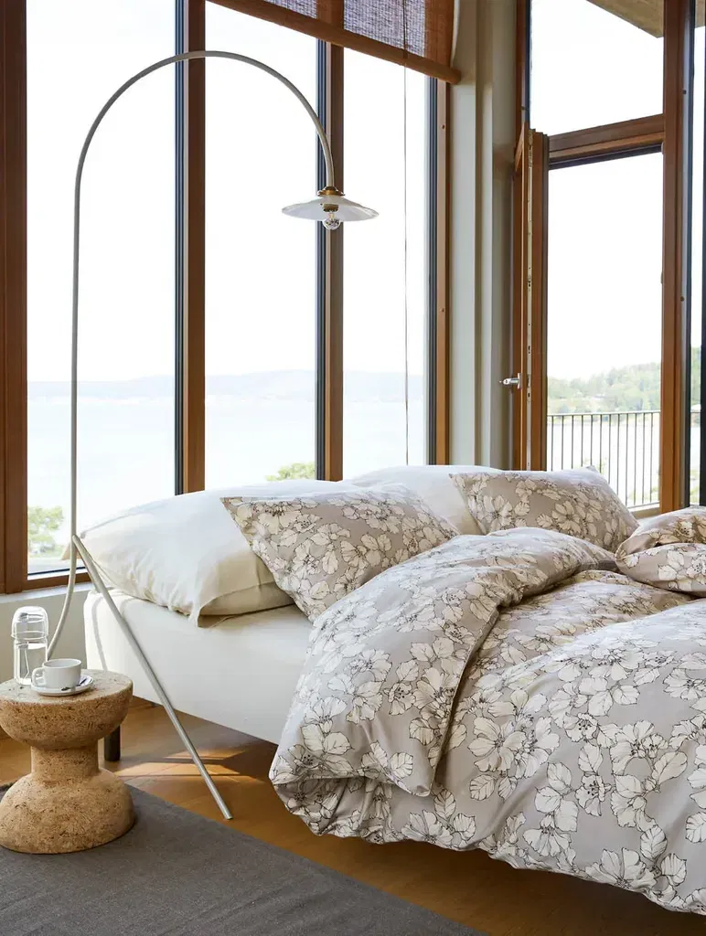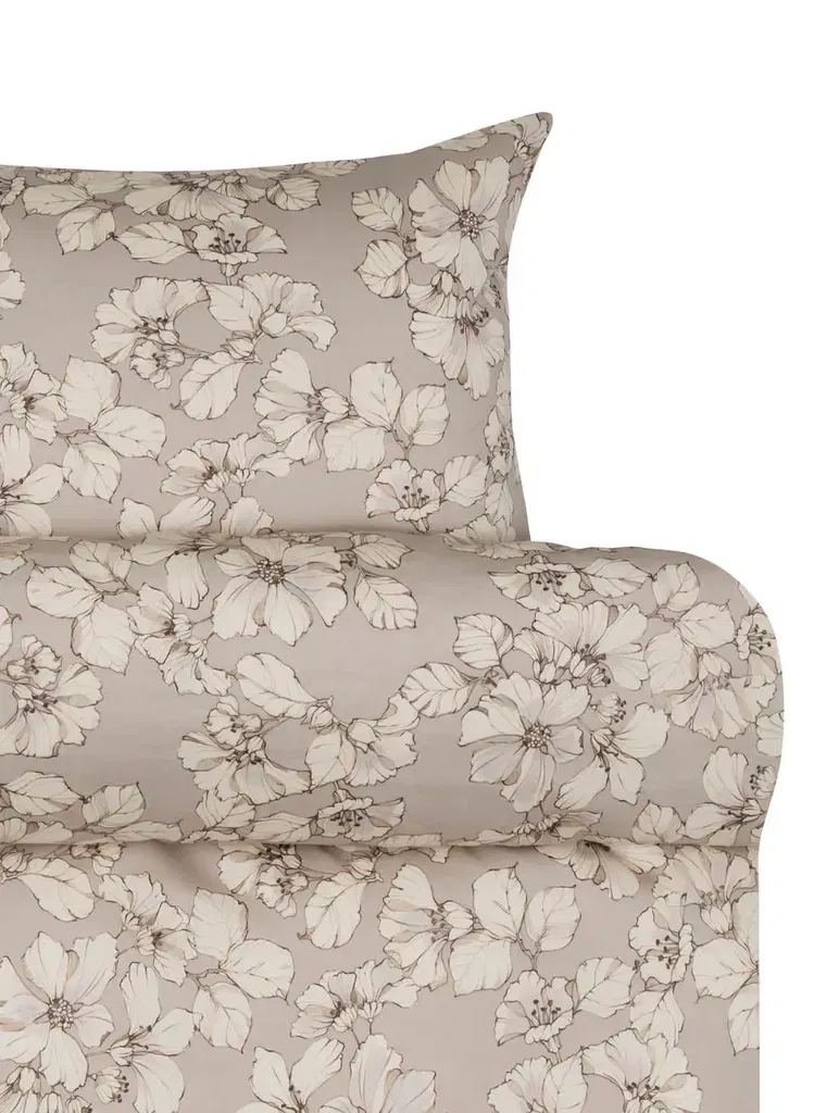 Redo att välkomna in sommaren? Bäddsetet har en beige färgskala och mönstret består av fina stora blommor. Satinväven skapar lyster som ger glans till sängen och framhäver mönstret till dess fulla potential. Ett perfekt bäddset till den som vill börja med sommarkänslan redan nu!