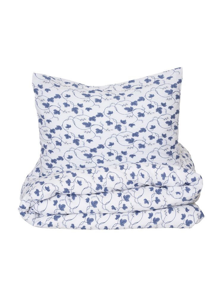 Backa Seersucker Blå Blommor Bäckebölja för enkeltäcke innehåller ett påslakan 150x210 cm och ett örngott 50x60 cm.