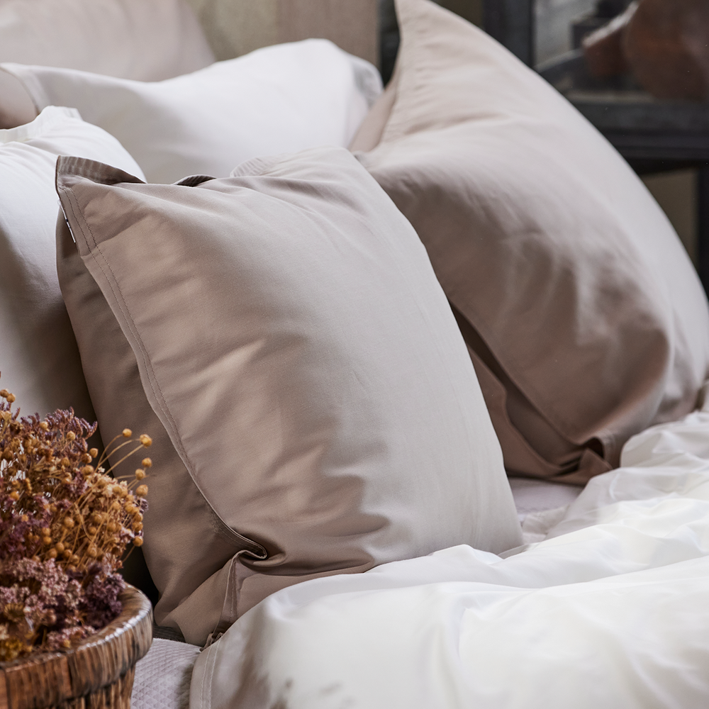 Beiget, vackert och himmelskt mjukt påslakanset i bambu, innehåller tre delar (två örngott 50x60 cm). Det är tillverkat i bambuviskosmix som är ett supermjukt och lyxigt material som andas, håller huden sval och verkar fuktighetsreglerande. Perfekt för dig som blir varm på natten. Det har en silkeslen och exklusivt känsla.