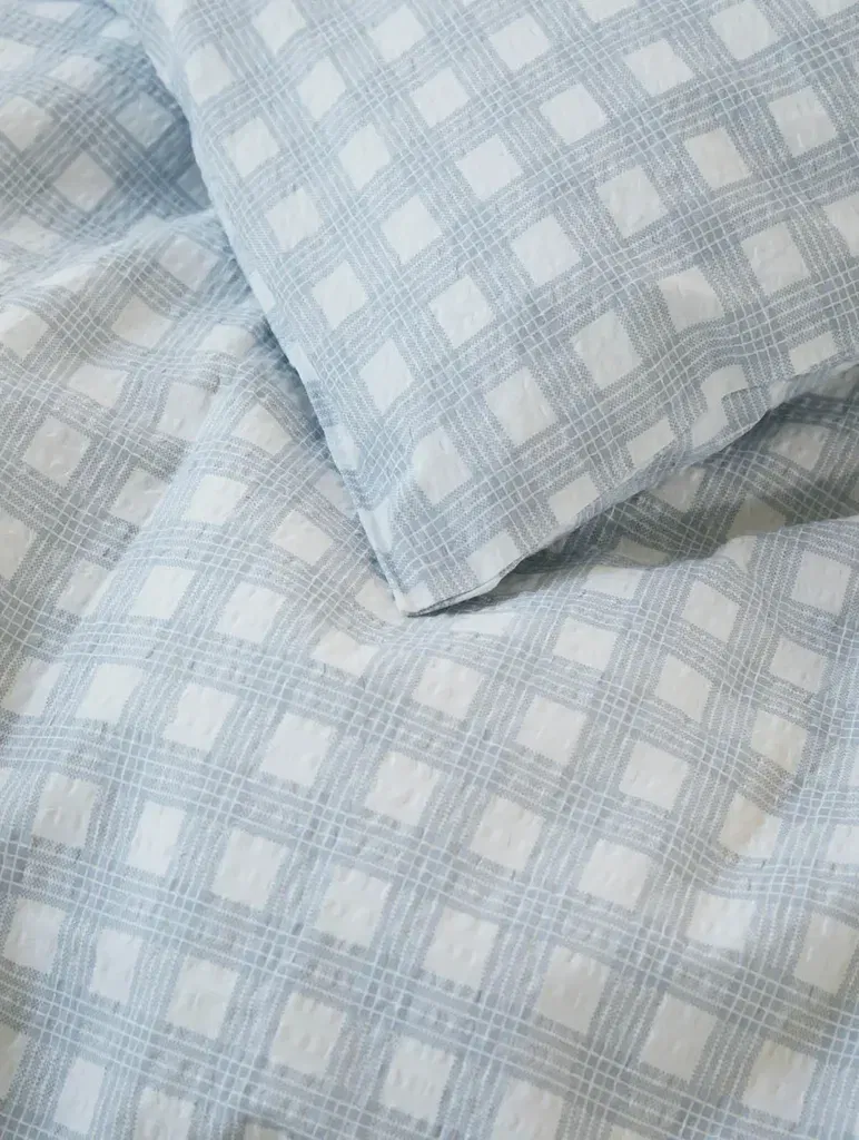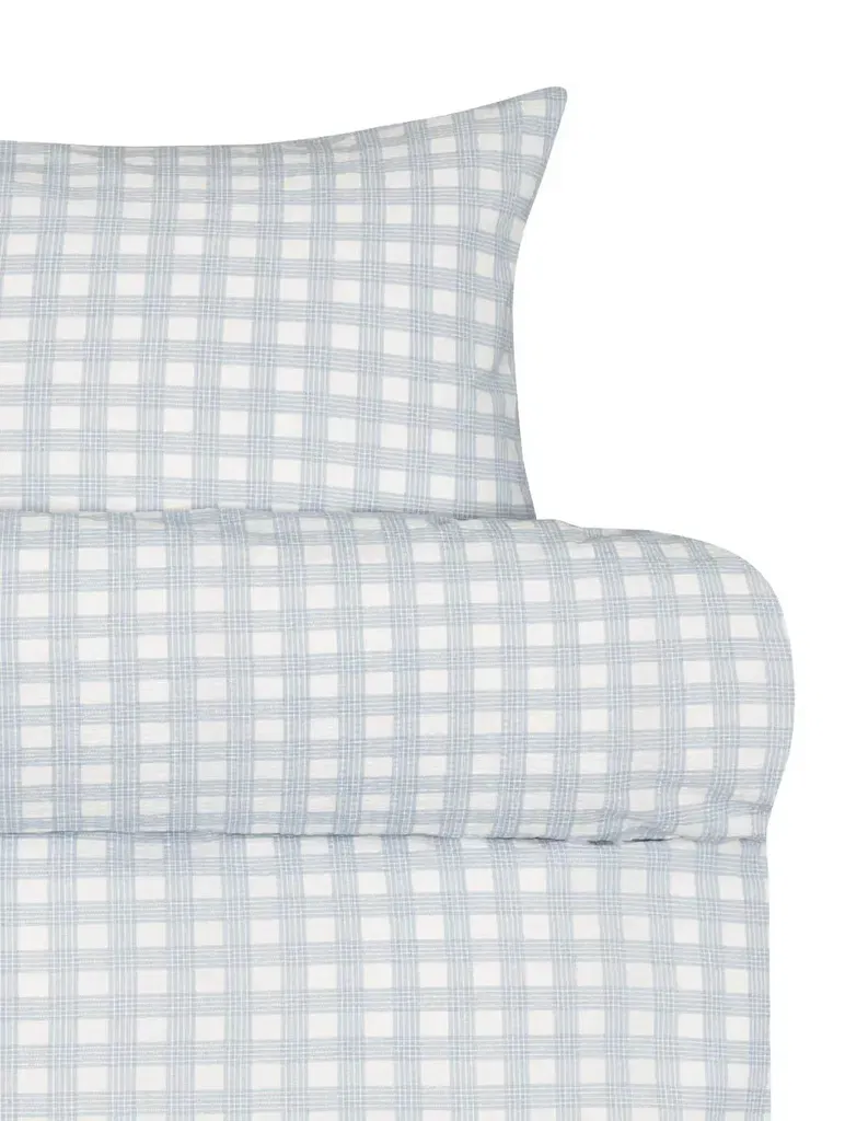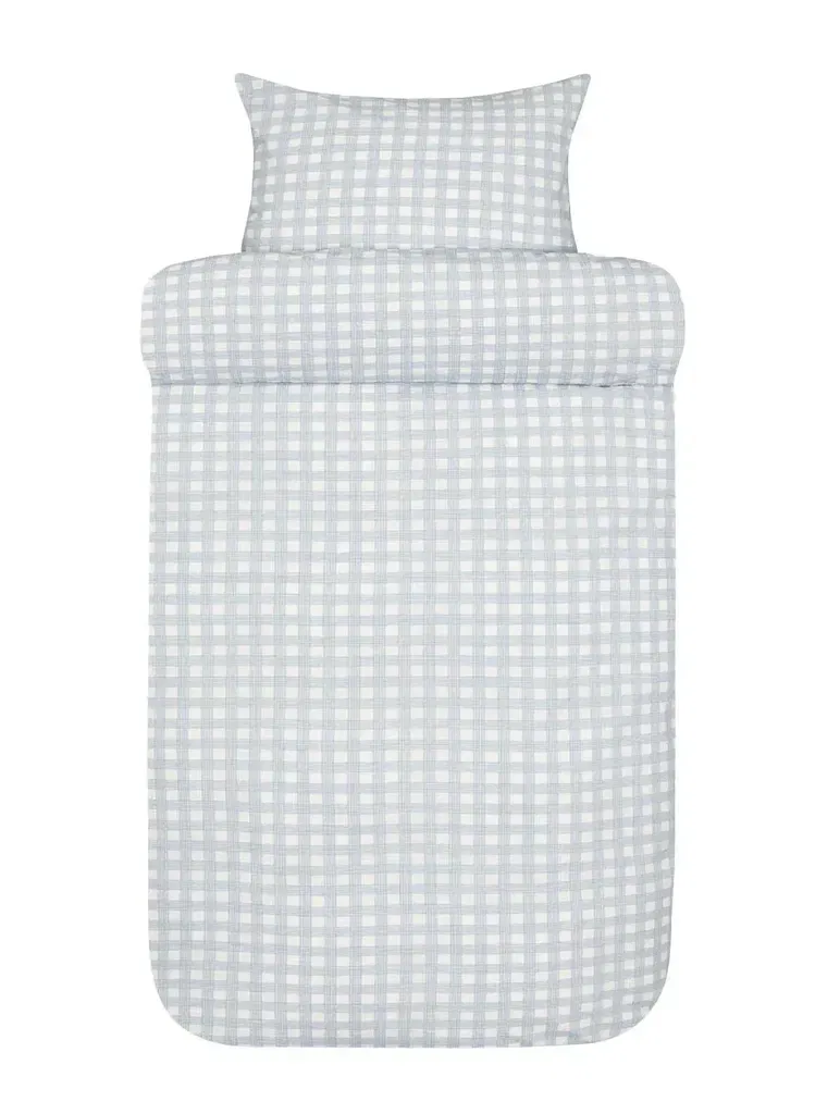 Birk Blå Rutig Bäckebölja för enkeltäcke innehåller ett påslakan 150x210 cm och ett örngott 50x60 cm.