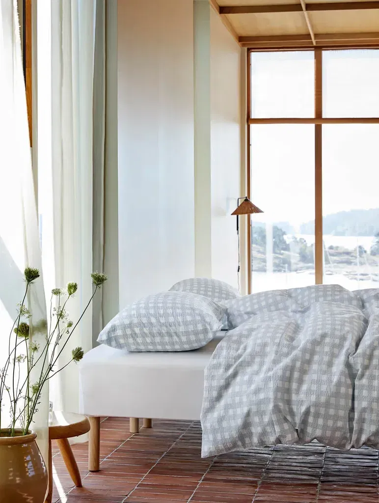 Birk är ett bäddset i en härligt mjuk bäckeböljekvalitet som har en avslappnad och trendig look. Bäckeböljan skapar en kombination av krisp och värme till sängkläderna. Bäddsetet har ett klassiskt rutigt mönster i blått och vitt som passar in i alla olika hem. Satsa på ett klassiskt uttryck med ett vitt lakan eller kombinera med ett lakan i en matchande färg för att öka spänningen i sovrummet!