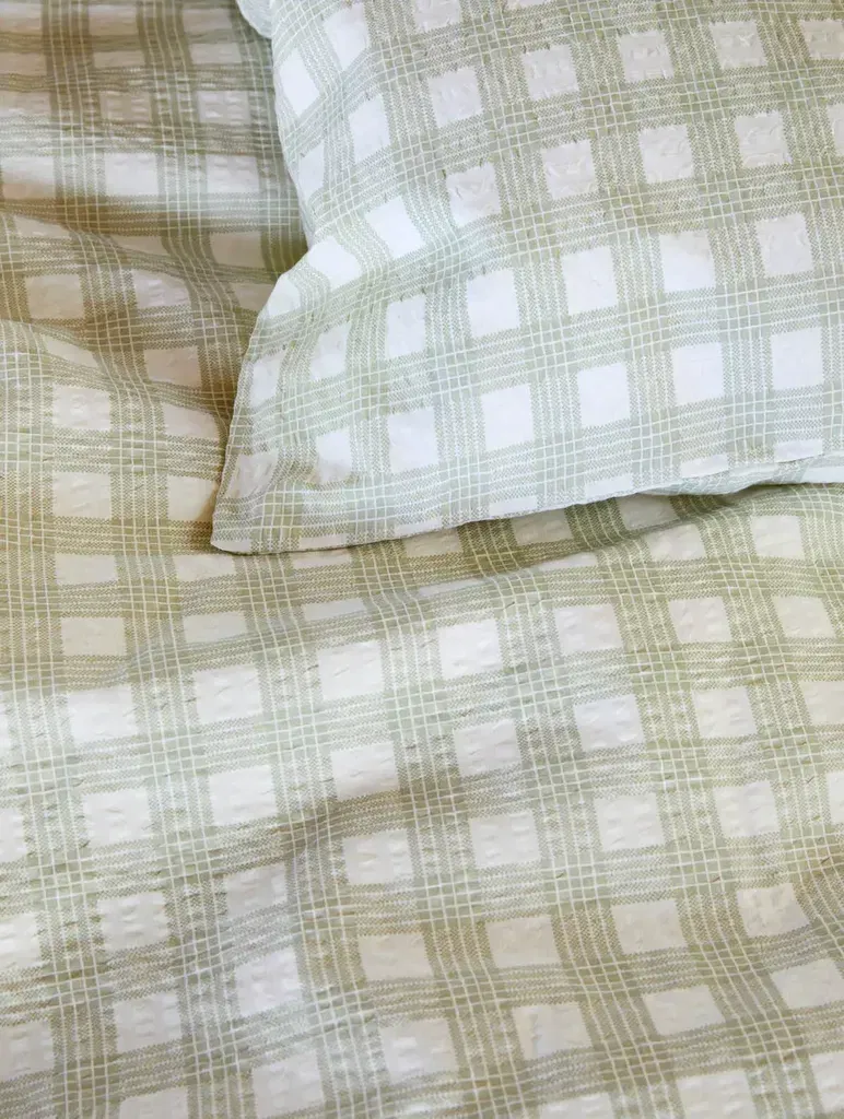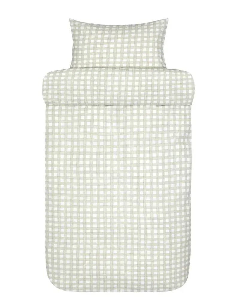 Birk Ljusgrön Rutig Bäckebölja för enkeltäcke innehåller ett påslakan 150x210 cm och ett örngott 50x60 cm.