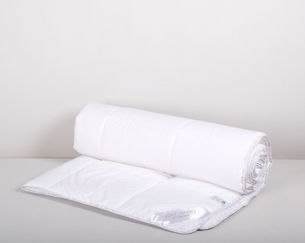 Blåklocka är tillverkad av ett tyg i 100 % ekologisk bomullscambric med en stoppning av 100 % silikoniserad Softfiling - certifierad återvunnen polyesterhålfiber av högsta kvalitet. Polyesterhålfiberns egenskaper ger täcket en oemotståndlig isoleringsförmåga och livslängd. Med certifieringen OEKO-TEX garanteras att täcket är tillverkad på ett bra sätt för både människa och miljö.