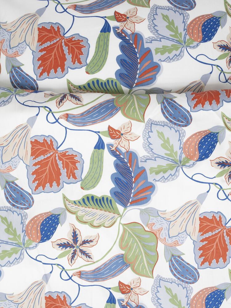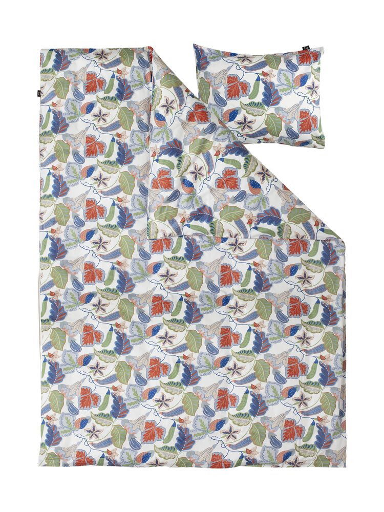 Brunnberg är ett mjukt bäddset tillverkat av bomullssatin från Kosta Linnewäfveri. Bäddsetet har en vit bottenfärg som hjälper till att bringa fram det vackra mönstret av färgglada och slingrande blommor, blad och frökapslar. De rika och glädjefyllda färgerna av blått, rödorange, grönt och ljuslila i mönstret för tankarna till Monets trädgårdar och ger inspiration och nytänk inför vårens nya bäddning. Inspireras och kom undan den gråa vardagen med en härlig natts sömn med Brunnberg!