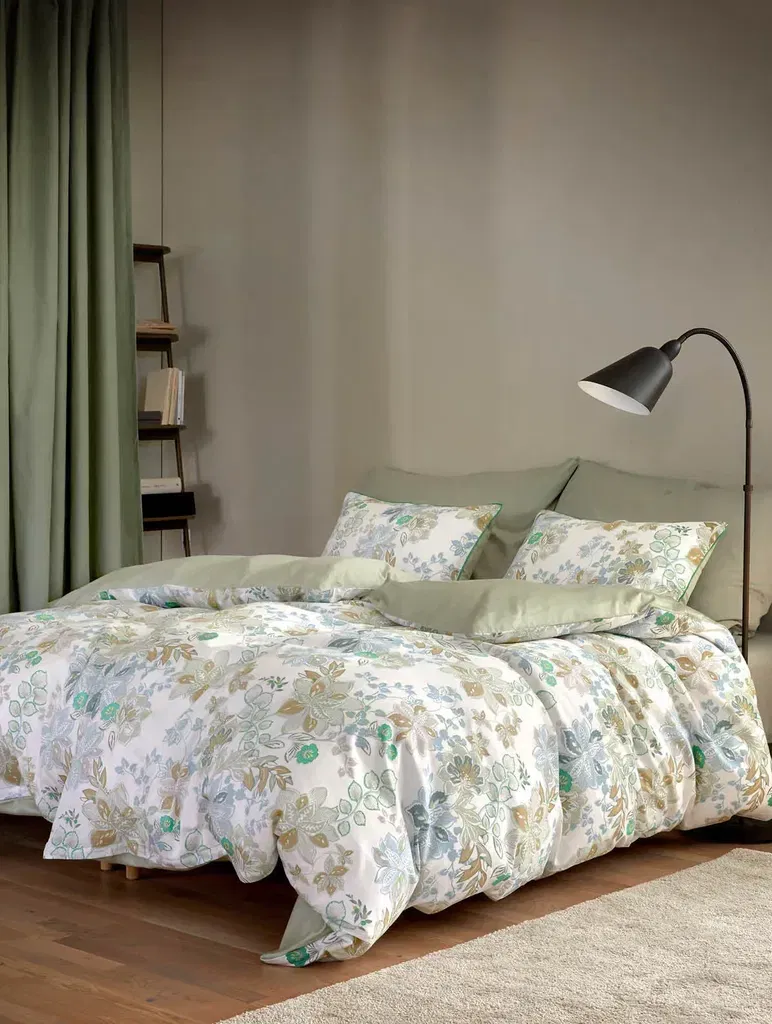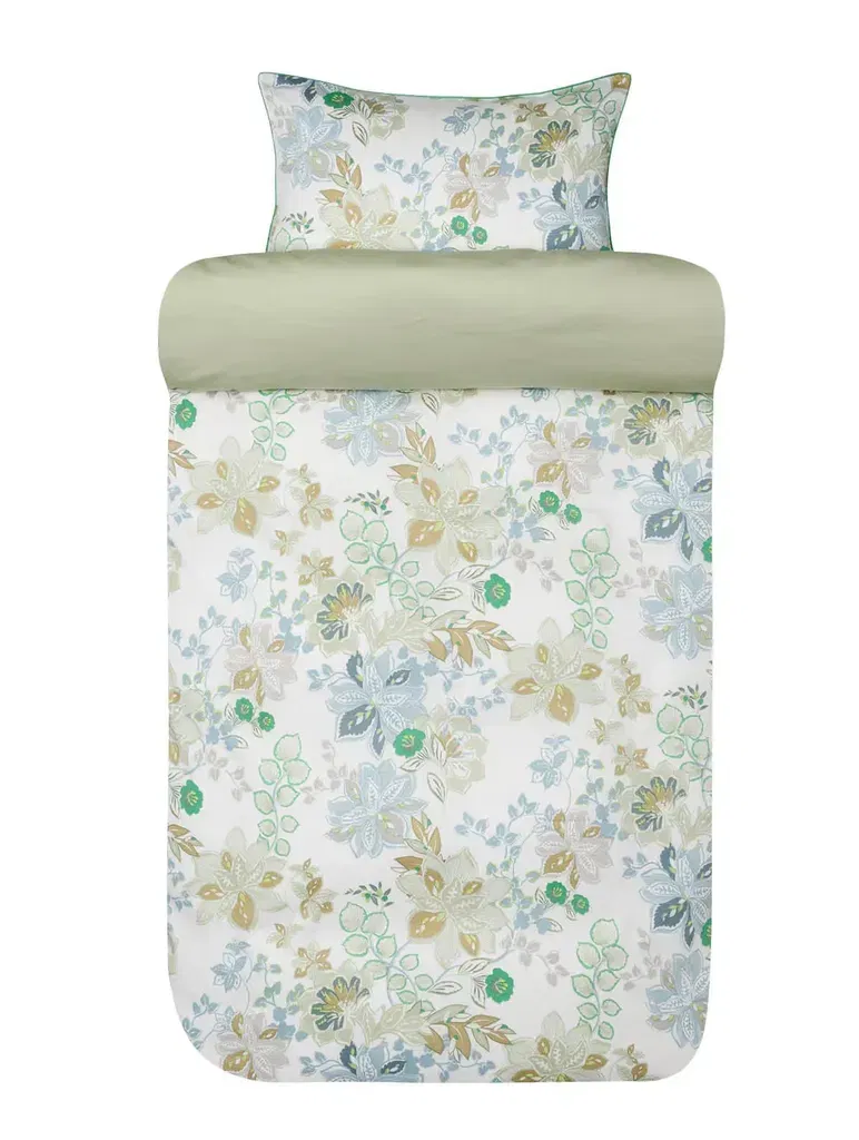 Cassandra Ljusgrön Blommor Satin Bäddset Enkeltäcke 150x210 Höie