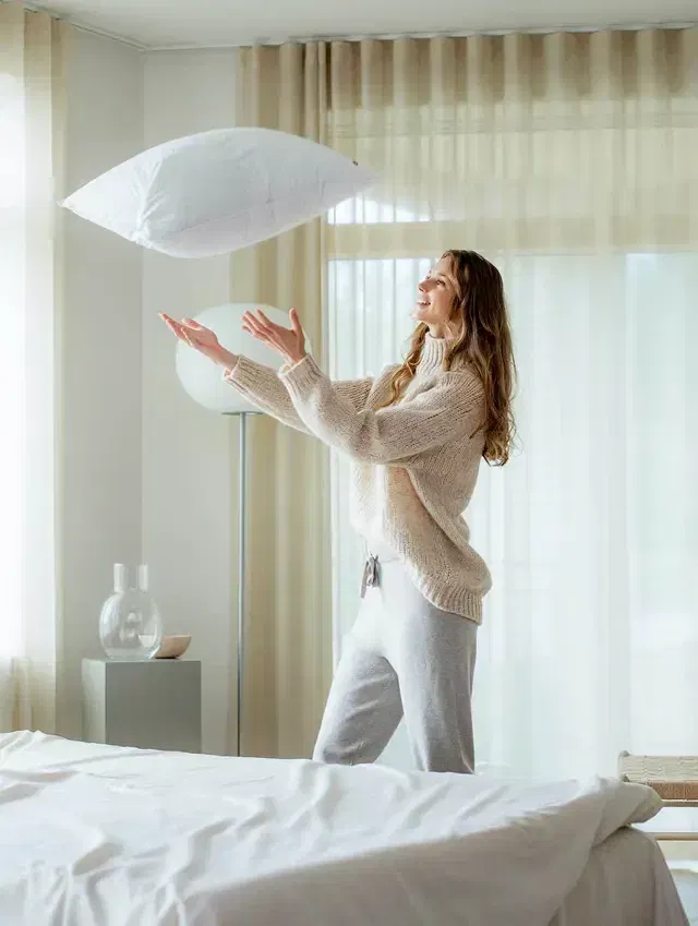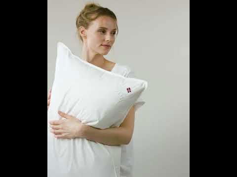 Lyxig dunkudde från Höie, fylld med mysksanddun och fjädrar. Allergivänlig och eko-certifierad för en fräsch och bekväm sömn.