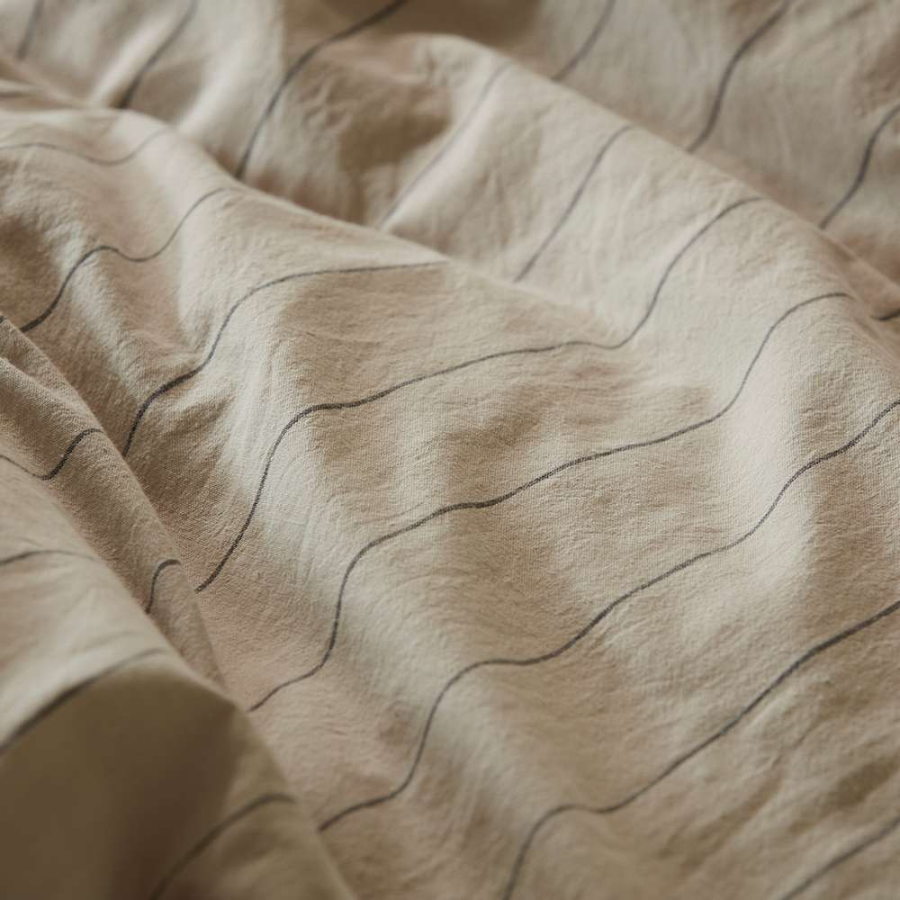 Detta exklusiva påslakanset från Gripsholm kombinerar klassisk linnefärg med subtila mörkgrå ränder, vilket ger en elegant och tidlös design. Tillverkat i en hållbar blandning av lin och bomull, erbjuder detta set en unik kombination av styrka och mjukhet