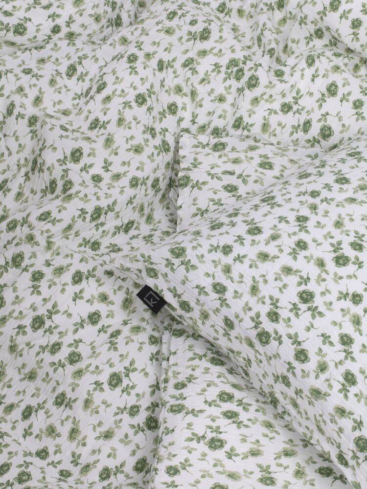 Fagerhult från Kosta Linnewäfveri är ett svalkande bäddset i en härligt mjuk bäckebölja. Bäckebölja är ett bomullstyg som kännetecknas av dess bubbliga struktur i tyget, vilket ger en luftig och svalkande känsla mot huden. Fagerhult har ett fint mönster i form av små blommor i vackra gröna toner på en vit bottenfärg. Med bäckeböljan så passar bäddsetet utmärkt till en varm sommarnatt, men lika bra till en kylig vinternatt om man vill ha ett svalkande påslakanset året om. Fagerhult är ett perfekt val till den som vill få ett skönt bäddset som både är prisvärt och härligt att sova i!