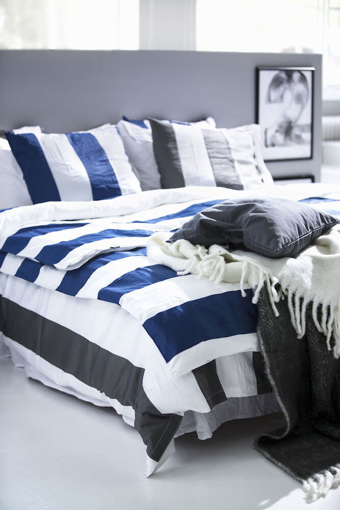 Fjällbacka Randigt Marin Satin Bäddset Dubbeltäcke 230x220 Kosta Linnewäfveri