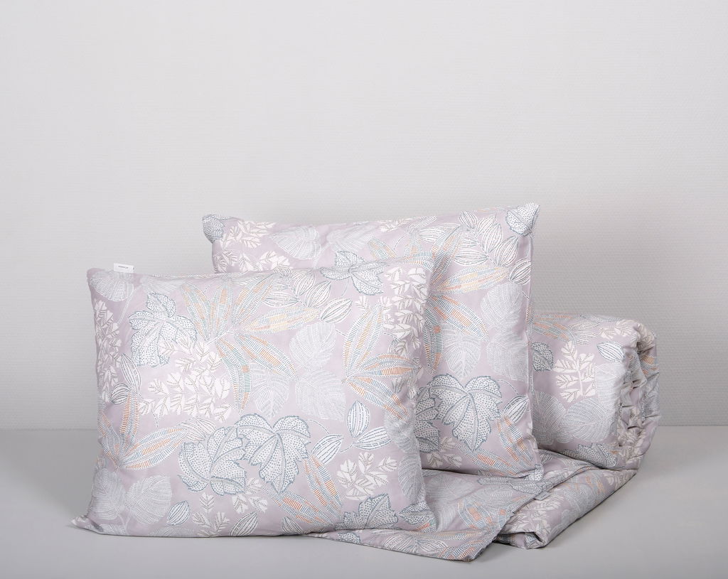Frövi tar bäddningen till nya nivåer med dess romantiska uttryck. Bäddsetet får ett otroligt lyster tack vare en mjuk satinkvalitet tillsammans med dess vackra bladmönster i mjuka färger som vitt, ljuslila, blått, grått och oranget. Färgerna skapar tillsammans en harmoni till sovrummet och välkomnar in romantiken till alla hemmets rum!