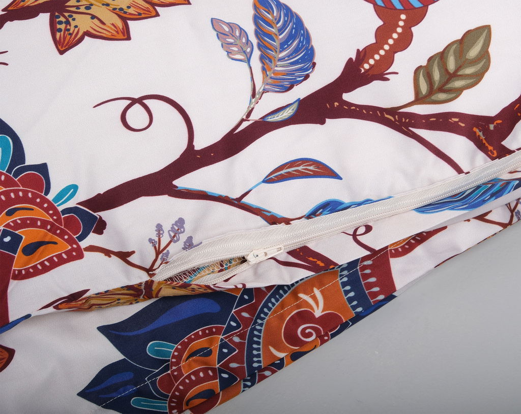 Bäddsetet är tillverkat av 100 % bambu med en imponerande trådtäthet på 300 TC, vilket ger en silkeslen känsla mot huden. Bambufibern är naturligt antibakteriell, fuktavledande och temperaturreglerande - perfekt för en god natts sömn året runt. Det exotiska mönstret med detaljrika blommor och löv i varma jordtoner skapar en harmonisk atmosfär som förvandlar sovrummet till en fridfull oas.