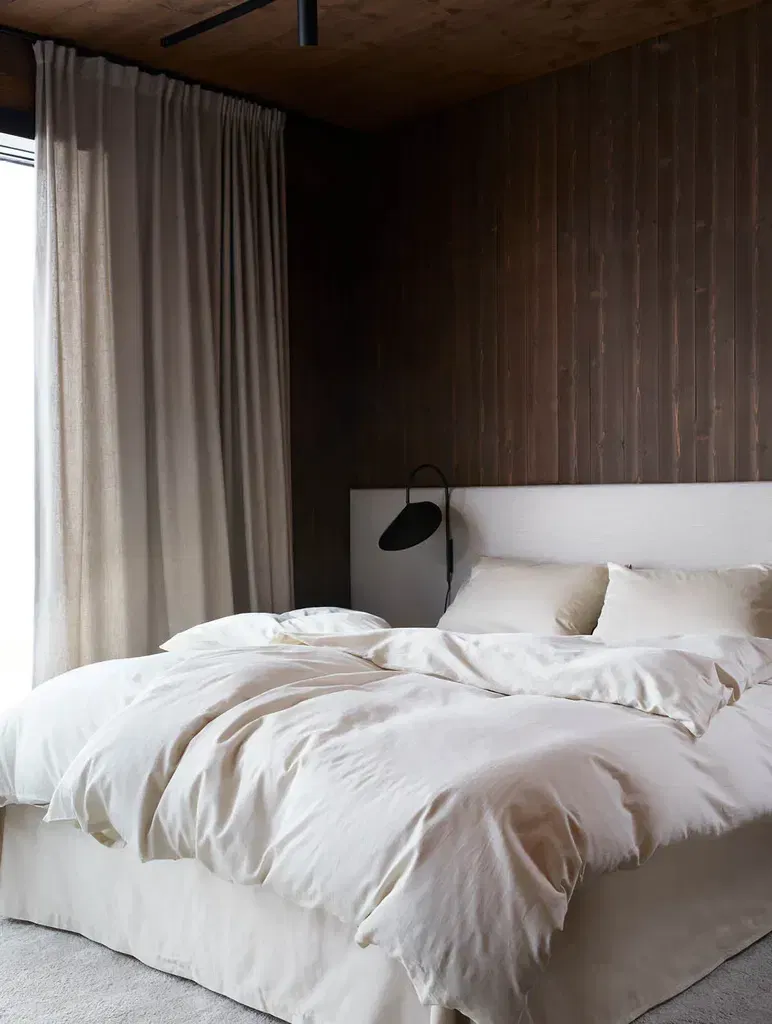Harmoni är ett formsytt dra på lakan i satin från Höie som är extra, extra mjukt med en mattare och mer avslappnad look. Dra på lakanet är stentvättat för att få tyget att uppnå den extremt mjuka känslan och skapar det mattare utseendet som bidrar till det unika utseendet. Harmoni är enfärgat i den vackra vita nyansen elfenben, som ger ett ljus till sängen och en stilren karaktär till sovrummet.
