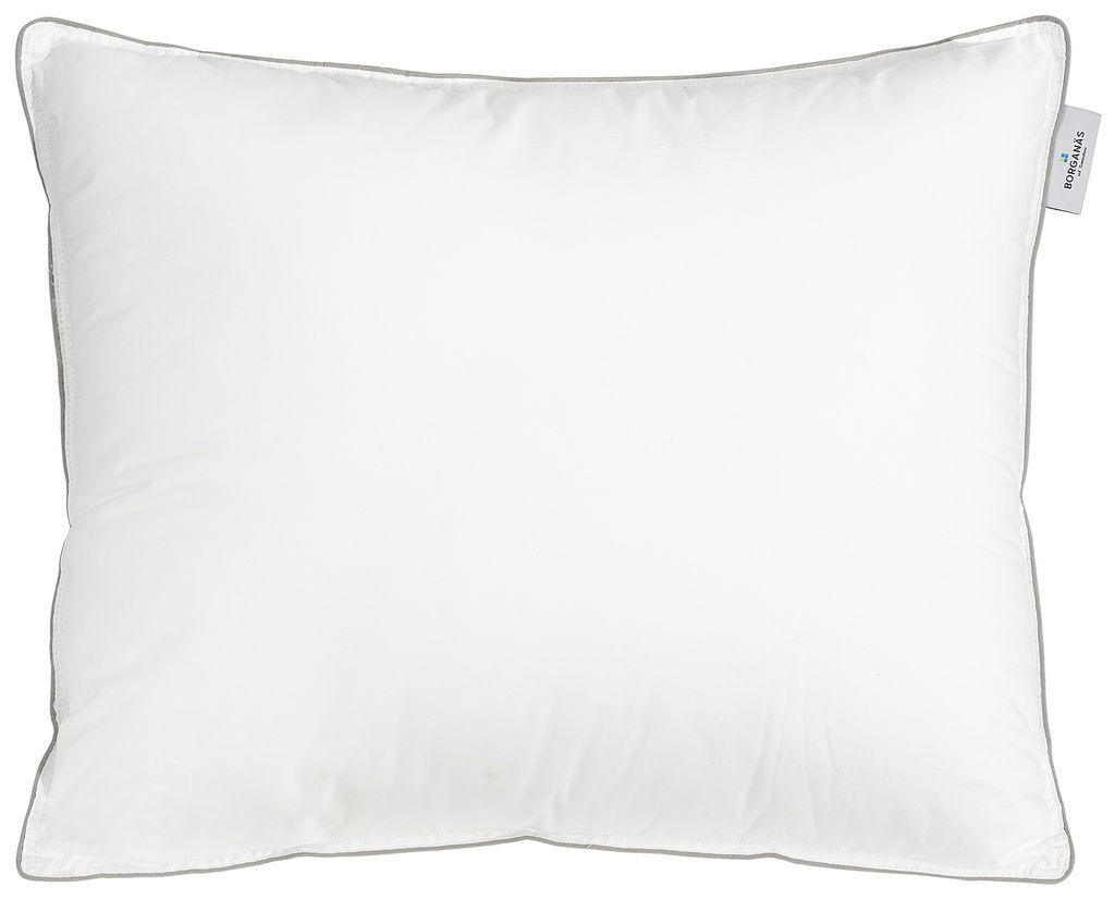 Här är en lyxig kudde som ger den rätta hotellkänslan till sömnupplevelsen. Kudden från Borganäs of Sweden är tillverkad av 100 % bomullscambric med en fyllning av 650 gram hålfiber. Bomullscambricen är mycket slitstark och är gjord för att hålla länge. Kudden har en passpoalkant i grått runt om kudden som en extra touch på hotellupplevelsen.