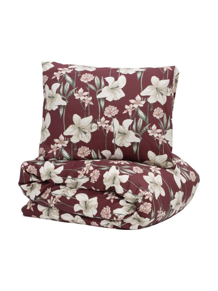 Kyrkosund Vinröd Blommigt Satin Bäddset Enkeltäcke 150x210 Kosta Linnewäfveri