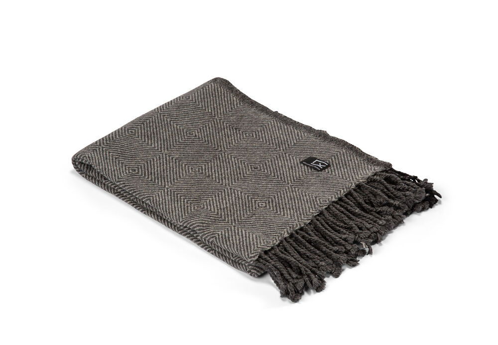 Pläden Kolstorp från Kosta Linnewäfveri är en elegant och behaglig pläd som kombinerar stil och funktion. Det geometriska mönstret i mörkgrått ger ett sofistikerat intryck, medan de dekorativa fransarna på kortsidorna adderar en charmig touch