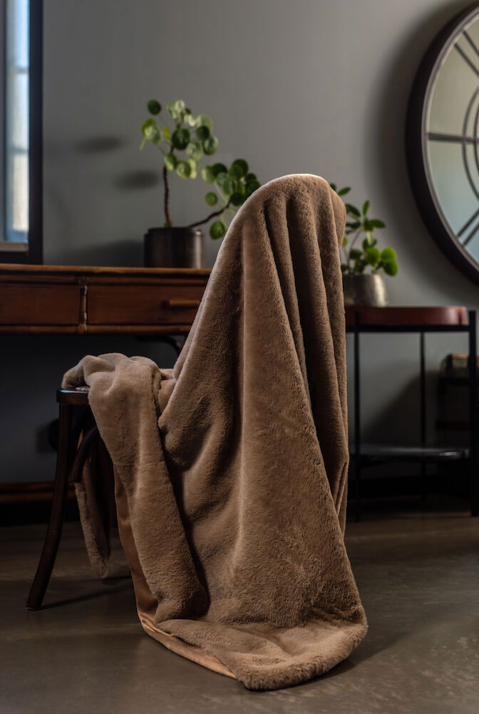 Pläden Nordby är en underbart mjuk och varm pläd i en härlig nougatig nyans. Nordby är tillverkad i fuskpäls och mikromink, vilket ger den dess pälsliknande utseende. Pläden är mycket värmande och förhöjer myskänslan i hela rummet. Detta är ett perfekt val att svepa runt sig när det börjar kyla ner på höst- och vinterkvällar!