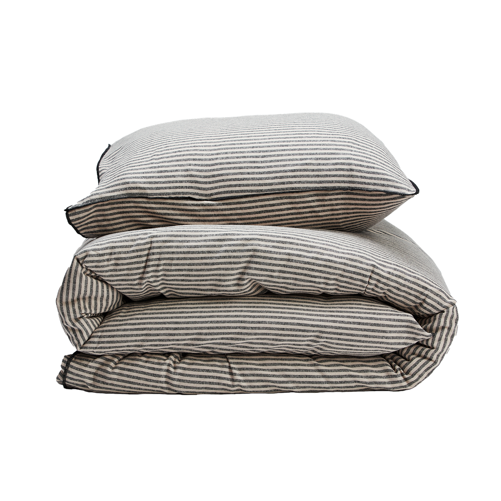 Randigt Flanell Svart Påslakan 150x210 Gripsholm