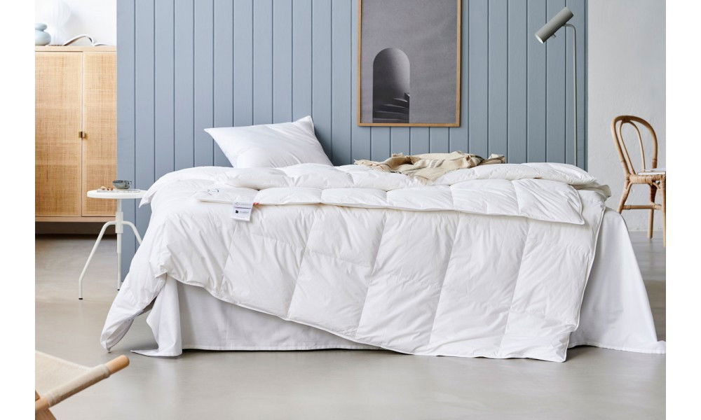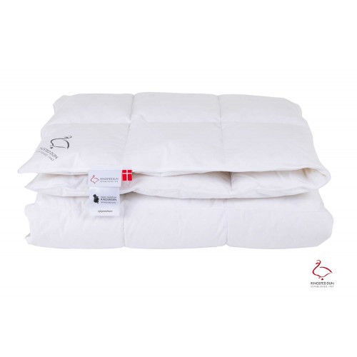 Året om täcke med 90% gåsdun, ger en ombonad och mysig känsla. Allergivänligt och tillverkat i Danmark. Perfekt för alla säsonger.