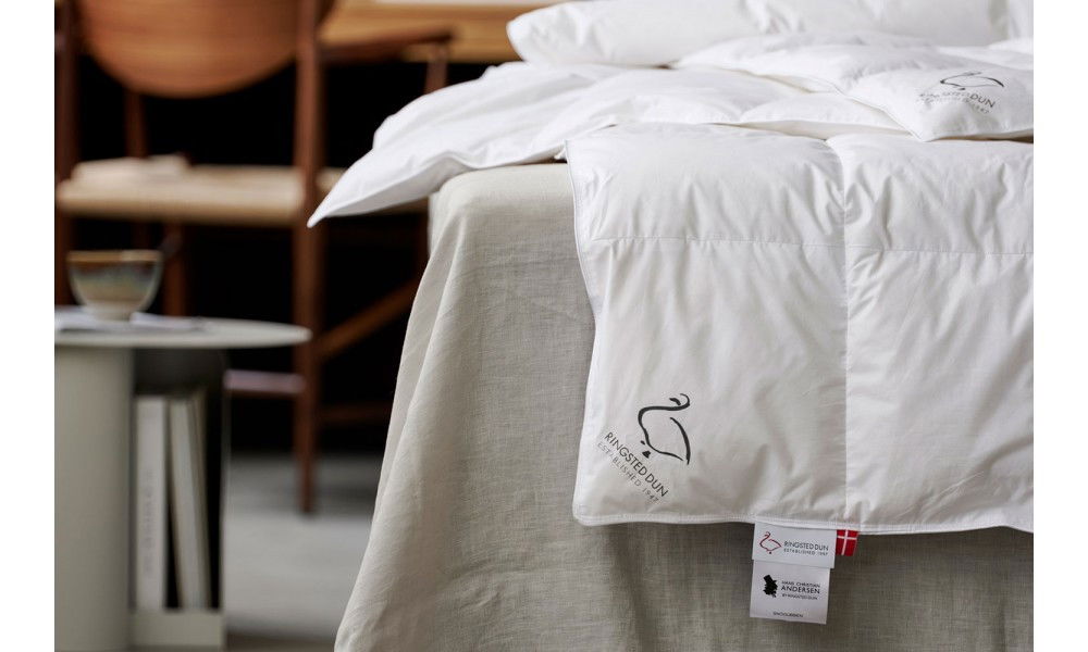 Medelvarmt och allergivänligt duntäcke från Ringsted Dun, fyllt med 90% anddun. Passar året om och ger en lagom temperatur. Tillverkat i Danmark.