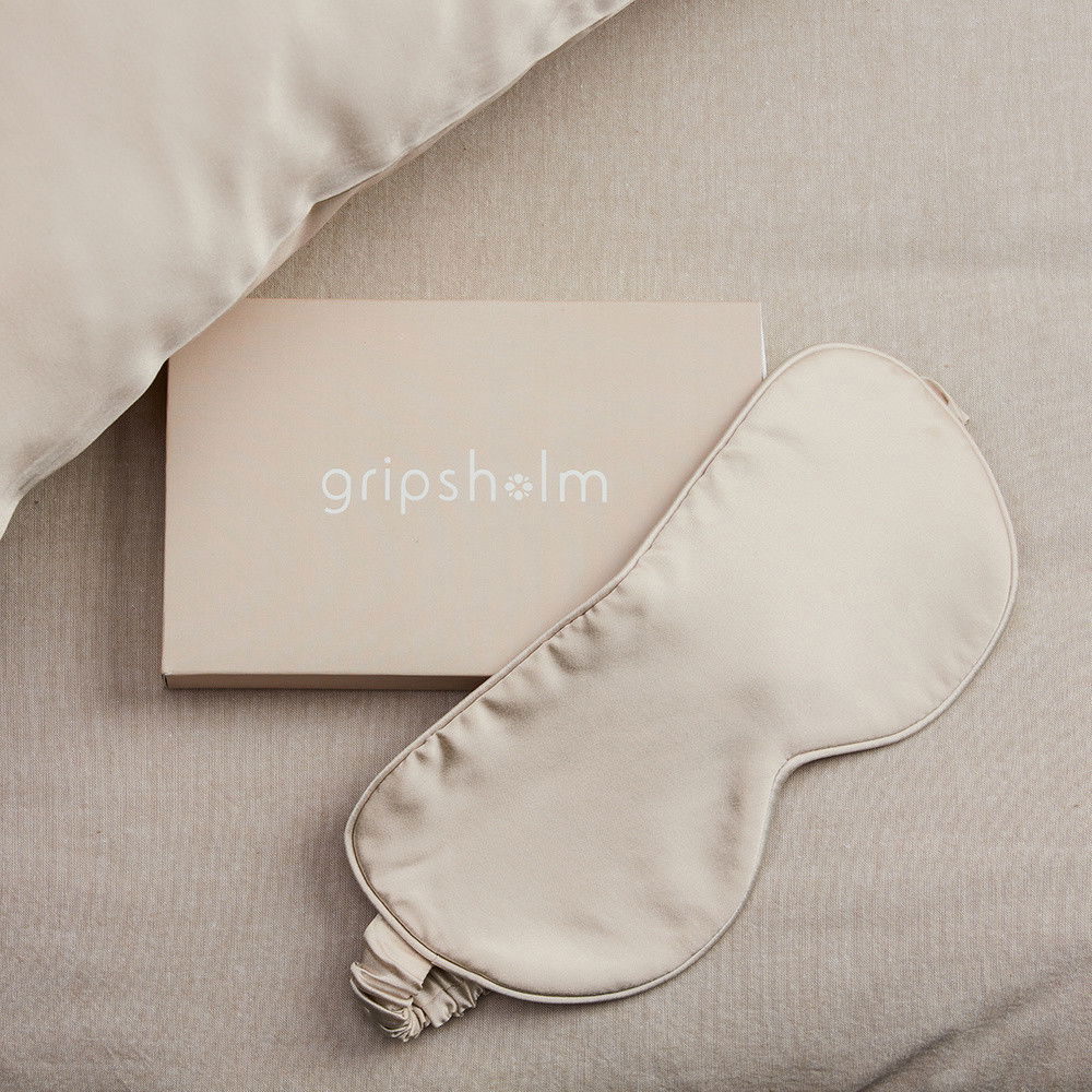 Vakna utvilad med Gripsholm exklusiva champagnefärgade sidenögonmask. Skonsam mot hud, allergivänlig och temperaturreglerande för optimal komfort.