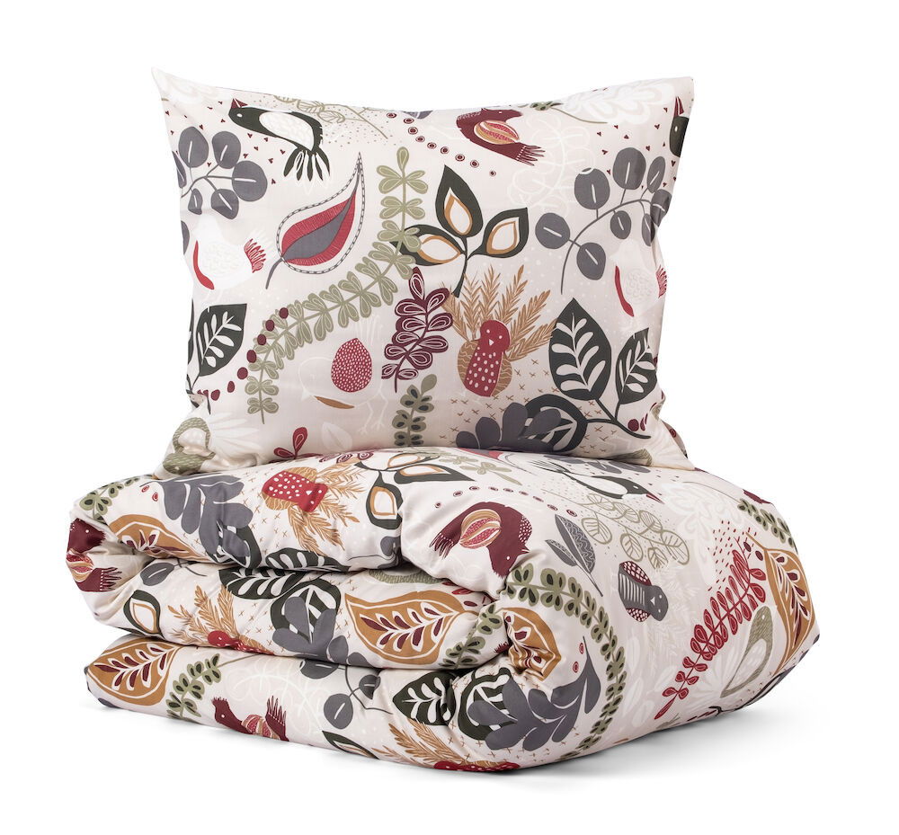 Bädda sängen med Stormhagen Sand som ger en ljuvlig färgklick till sovrummet på ett stilrent och smakfullt sätt. Det är inte enbart ett fint bäddset, utan det är en fantastisk inredningsdetalj som fångar ögonens uppmärksamhet direkt. Skruva upp känslan av lyx med det vackra och lekfulla mönstret av fåglar och blad i olika färger, som förstärks på en kompletterande bottenfärg i en härligt beige nyans.